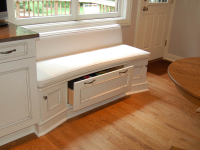 a Built-in bench with storage below adds seating in the kitchen while adding much-needed storage space.